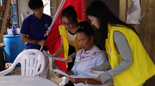 志愿队伍深入水乡巷陌,传递石榴籽精神。在水族大娘家的小院,队员们用刚学会的几句水族语问候,引得老人开怀大笑,连声说“勒啊勒啊勒啊”(好好好)。围坐在一起,队员们指着印有各民族和睦相处的图册,讲述“远亲不如近邻”的多民族社区互助故事。志愿者绘声绘色地讲解,让“各民族像石榴籽一样紧紧抱在一起”的理念悄然传递。